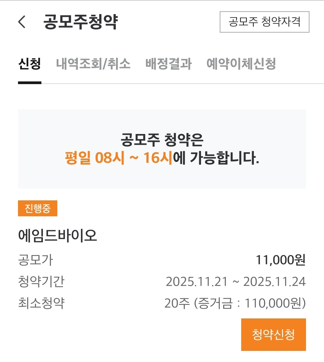 | 오늘의 공모주 청약(에임드바이오) (0) | 2025.11.21 |